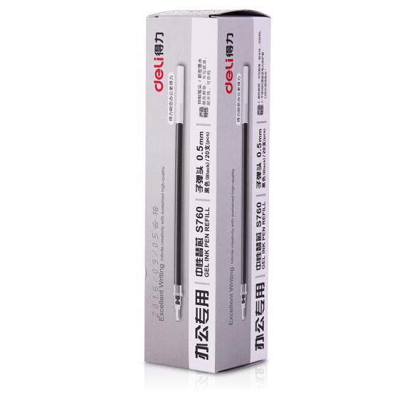 得力(deli)黑色筆芯 中性筆/水筆/簽字筆替芯20支裝S760子彈頭0.5mm(黑)20支