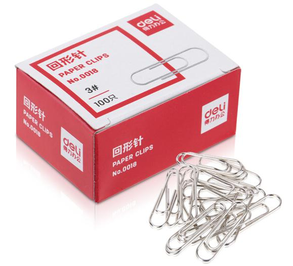• 得力(deli) 0018 銀色金屬回形針曲別針財務用品 辦公文具 單盒