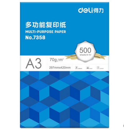 得力a3紙打印復(fù)印紙70g整箱 4包/箱 500張/包