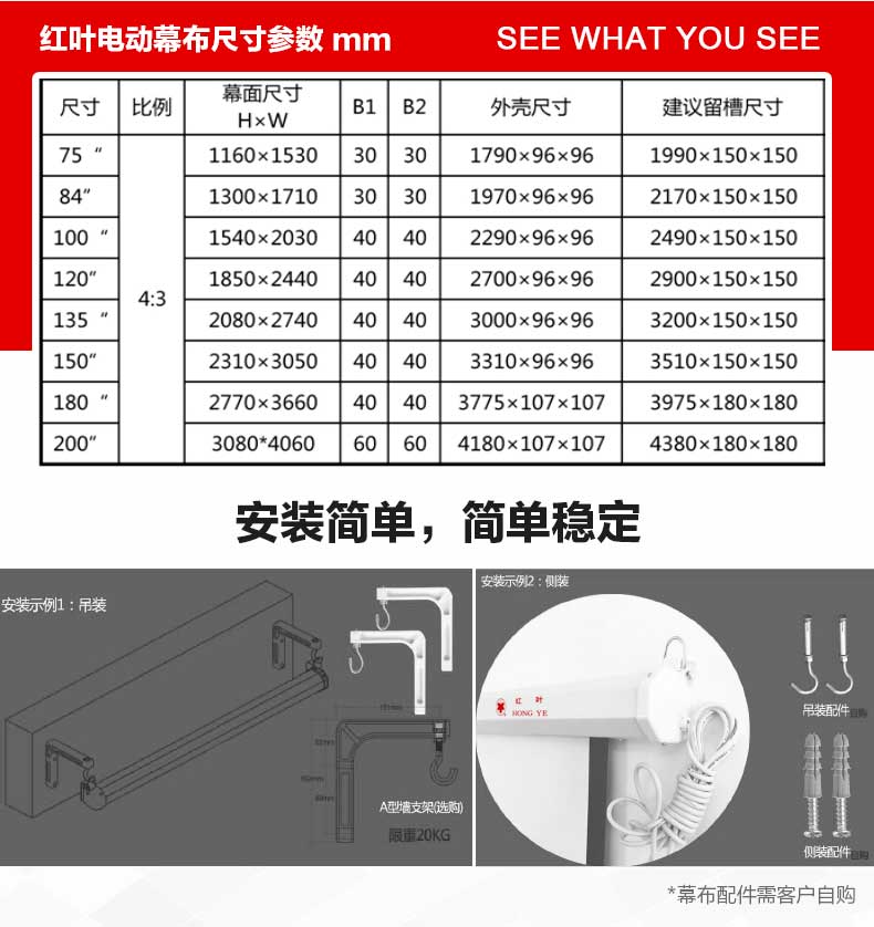 - 商品名稱:紅葉(redleaf)100英寸4:3 支架 幕布投影幕布投影幕投影機幕布投影儀幕布幕布 白色玻珠